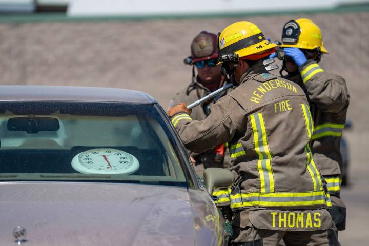 With triple-digit temperatures returning to Southern Nevada, Henderson firefighters demonstrated what happens if a child is locked in a hot car.