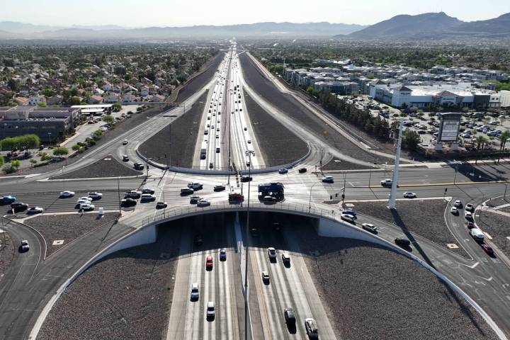 Once the project is finished, the 215 Beltway in Henderson will have five lanes and an auxiliary land in each direction between Pecos Road and Stephanie Street.